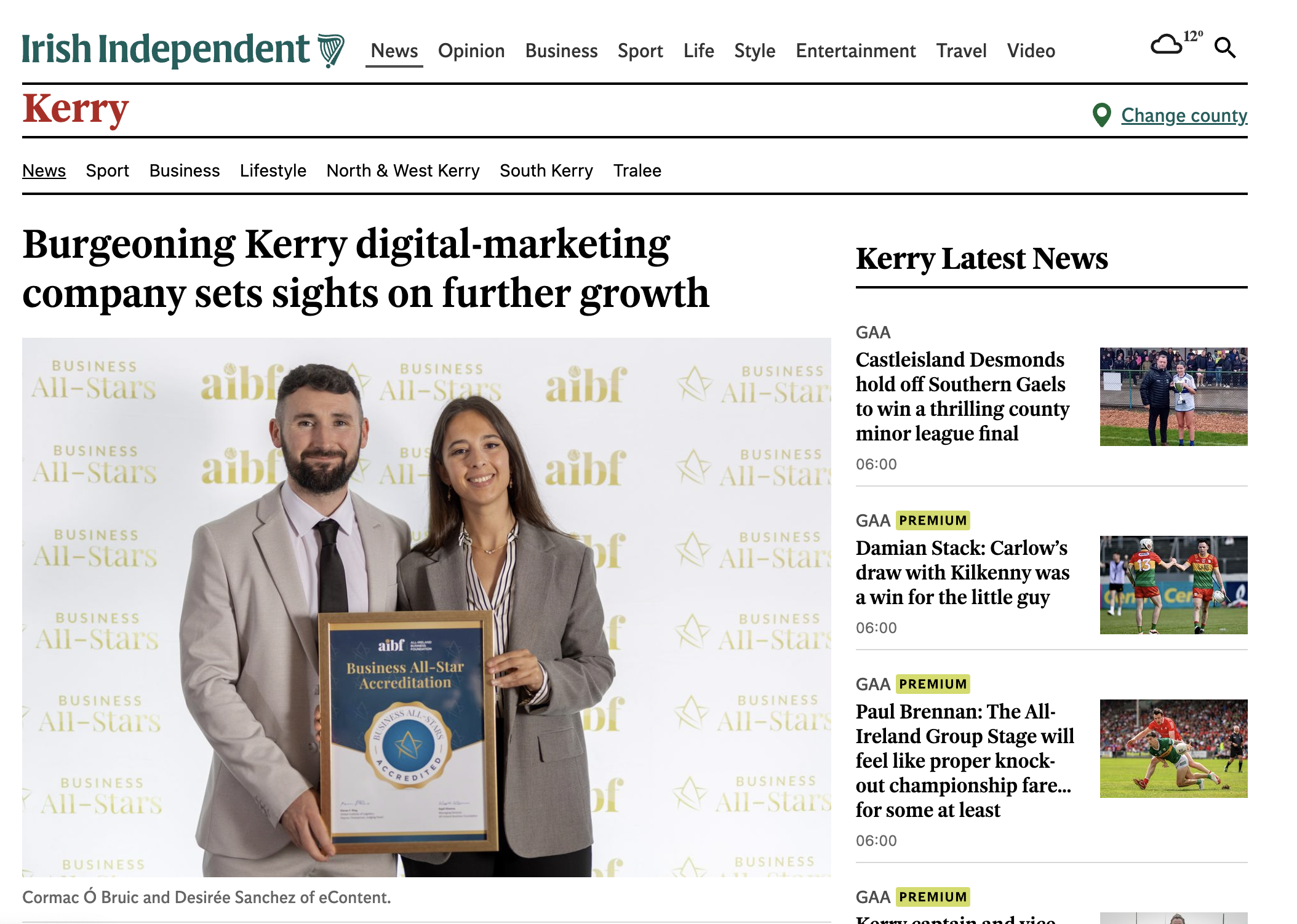 We're thrilled to announce that eContent, has been featured in a recent article by Independent.ie, Ireland's leading newspaper. The article highlights our journey, achievements, and vision for the future.